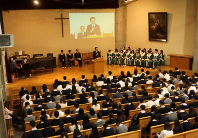 中学は日本キリスト教会浦和教会の鈴木美津子牧師、高校は日本キリスト教団柿ノ木坂教会の渡邉義彦牧師にお話をしていただきました。