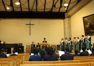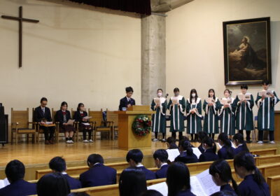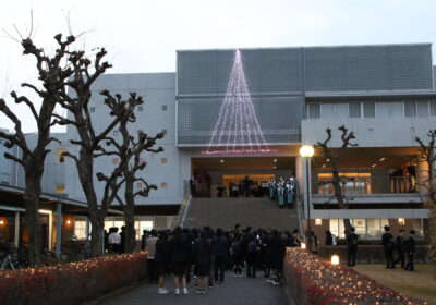 12月1日(月)16:15より点灯式を行いました。 チャペルで礼拝を行い、その後外へ移動してイルミネーションを点灯させ、クリスマスをお祝いする準備に入りました。
