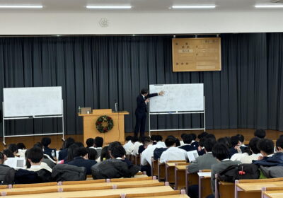 12月19日(金)、推薦進学コースの高校3年生を対象に、明治学院大学 経済学部 経済学科 室和伸 教授による「教養原論」の講義が行われました。『経済成長』というテーマでお話しいただきました。