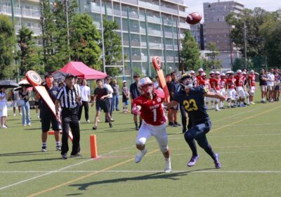| クラブ紹介 | 【U-15フラッグフットボール日本代表選出!】 高校1年 矢部雄生くん(QB) アメリカロサンゼルスで開催された、ジュニアインターナショナルカップで日本代表の一員として活躍し、準優勝に貢献しました。アメリカンフットボール部SAINTSは、選手・マネージャー・コーチングスタッフ一丸となり、関東大会出場を目指し活動をしています。部員は全員初心者(たまに経験者アリ)ですので、全員同じスタートラインで始められます。また、それぞれの特性に合ったポジションがあるため、誰でもできるスポーツです。カラダの大きい人がするスポーツだと思われがちですが、そうではありませんので、一度見学や体験に来てください。一緒にプレーしましょう。 現在活動している選手の中学時代のスポーツは、 ・アメリカンフットボール・フラッグフットボール・サッカー・バスケットボール・野球・柔道・水泳・陸上・卓球・剣道・テニス・ラグビー・テコンドーです。 アメフト経験やアメフト未経験でもアメフトをプレーする意思を活かした【運動クラブ推薦入試】もあります。 【運動クラブ推薦入学者中学時代のスポーツ】 ・アメフト・バレーボール・陸上・野球・サッカー・テコンドー ※【運動クラブ推薦】受験者は、アメフト未経験者がほとんどですので、お気軽にご連絡ください。顧問藤井 学校電話 042-391-2142 PCアドレス fujii@meijigakuin.ed.jp  |